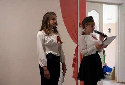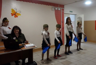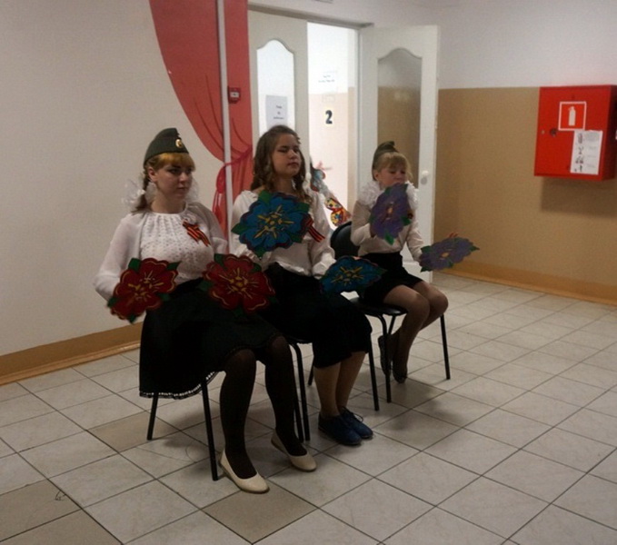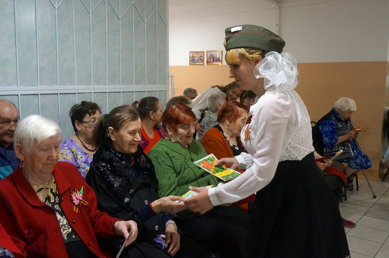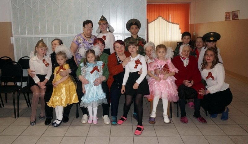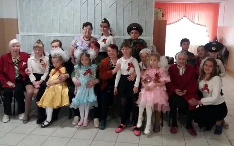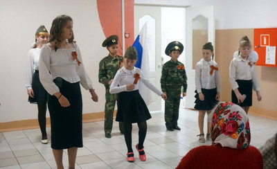Ветераны встретили ребят очень радушно. Во время встречи была очень тёплая праздничная обстановка. Юные артисты с большим волнением исполняли песни военных лет «Кино идёт», «Журавли», «Аист на крыше», «Синий платочек», «Служить России», а ветераны со слезами на глазах подпевали ребятам. На эмоциональном подъёме, весело, но по-военному чётко дети исполнили песню «Путь-дорожка фронтовая».