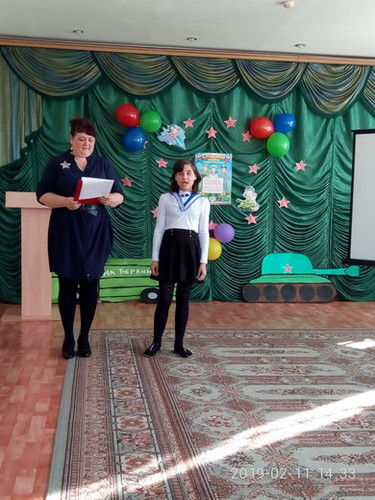 1-ое место заняли группа девочек,2-ое место заняли дошкольники и 3-е место досталось группе мальчиков. Все группы были награждены почётными грамотами и сладкими призами .А лучшие участники конкурса поедут с концертом- поздравлением в воинскую часть. Мероприятие всем очень понравилось .